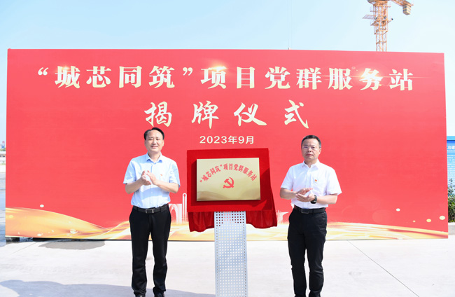 園區(qū)黨工委委員、管委會副主任崔廣全、張漢華共同為“城芯同筑”項目黨群服務(wù)站揭牌,開啟央企與地方企業(yè)黨建共建的美好開端。