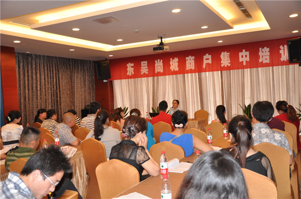 為確保東吳尚城7月中旬順利開業(yè),6月3日起,開發(fā)公司組織開展了入駐商戶集中培訓(xùn)活動,40余家簽約商戶參加培訓(xùn)。在當天上午的培訓(xùn)中,開發(fā)公司相關(guān)部門負責(zé)人向商戶介紹了工程進展、入場裝修注意事項以及物業(yè)管理等方面的事宜,并詳細解答了商戶提出的問題。