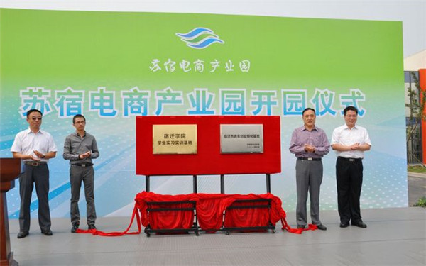 開園儀式上,顧玉坤同蘇州歐富朗電子商務有限公司總經理趙慧、團市委書記陳偉、宿遷學院科技處處長周德廉共同為“宿遷市青年創(chuàng)業(yè)孵化基地”、“ 宿遷學院學生實習實訓基地”揭牌。