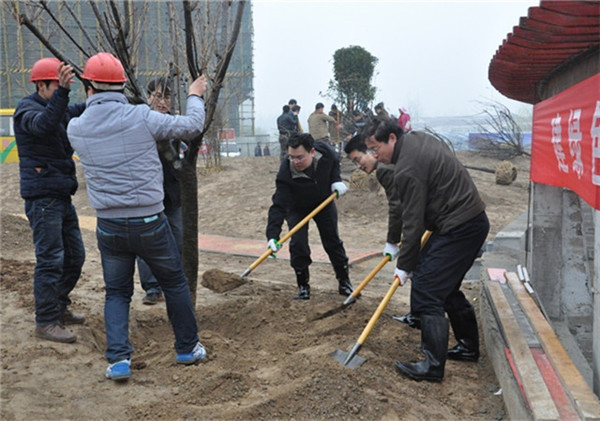 3月12日,正是一年一度的植樹節(jié),副市長、園區(qū)黨工委書記、管委會(huì)主任方文浜帶領(lǐng)40多名干部職工開展“建綠色園區(qū),樹綠色理想”植樹活動(dòng),為建設(shè)中的西楚金地廣場披上綠色的新裝。