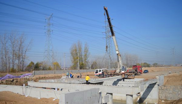 近日,可達(dá)科技配套項(xiàng)目天柱山路跨民便河橋梁10米空心板梁正式開(kāi)始吊裝。