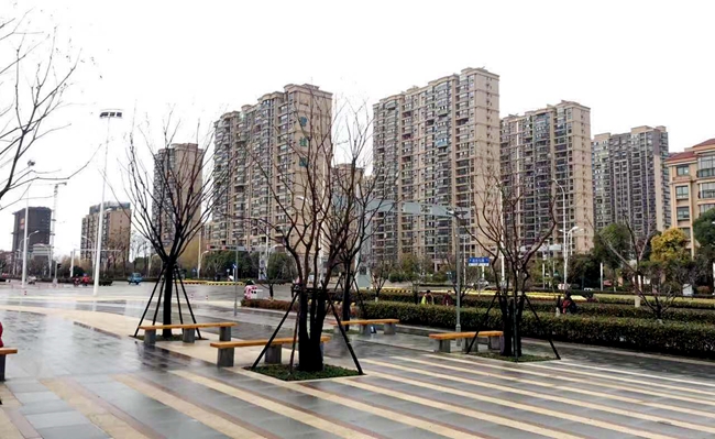 陽澄鄰里中心景觀工程主要包括北側(cè)主廣場石材鋪裝和四個苗木組團共同構(gòu)成,其中綠化組團由主廣場樹陣、西側(cè)生態(tài)停車場綠化帶、鄰里中心主入口區(qū)及南側(cè)卸貨區(qū)。苗木主要有櫸樹、烏桕、香樟、樸樹、柿樹等,整體觀感做到四季有賞、落葉常綠分明。