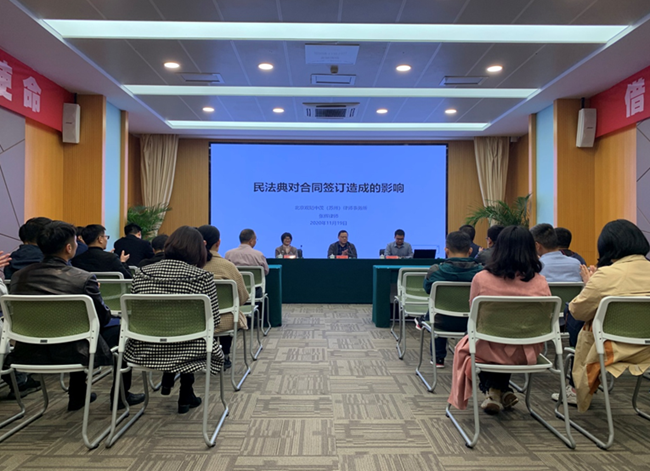 11月19日下午,我司舉辦《民法典》解讀專題講座,北京觀韜中茂(蘇州)律師事務(wù)所張輝律師主講,開發(fā)公司副總裁黃健主持,開發(fā)公司全體人員、建發(fā)公司、蘇宿鄰里公司相關(guān)人員參加講座。