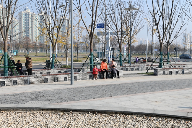 此次針對(duì)蘇州公園東北角處進(jìn)行重新栽植18株20CM的彩葉樹種的櫸樹和日本矮麥冬進(jìn)行栽植,同時(shí)為迎合蘇州街西入口整體景觀效果相協(xié)調(diào),增加更具“蘇式”韻味景觀長(zhǎng)條形式的坐凳滿足周圍居民生活休閑。
