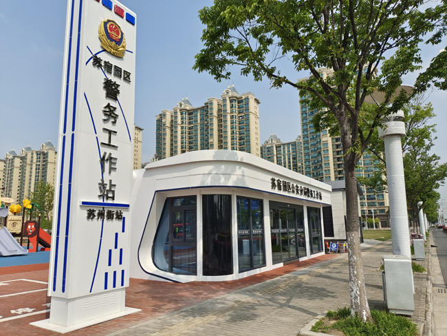 該警務(wù)工作站位于園區(qū)治安復(fù)雜部位、人車流密集區(qū)域的玄武湖路臨時健身公園東側(cè),建筑面積70多平方米。警務(wù)工作站外觀簡潔、標(biāo)識明顯,內(nèi)部設(shè)置接處警區(qū)、調(diào)解中心、志愿者服務(wù)區(qū)和休息室。警務(wù)工作服務(wù)站啟用后,既是警方工作平臺,也是便民服務(wù)網(wǎng)點(diǎn),將實現(xiàn)屯警街面、快速處警等一站式功能,著力筑牢社會治安打防管控第一道關(guān)口,為社會治安穩(wěn)定有序提供了堅實保障。