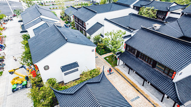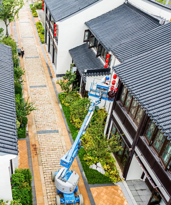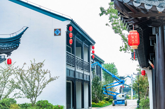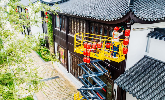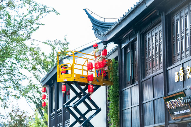 2023年9月25日,蘇宿工業(yè)園區(qū)蘇州街,工人們正在掛燈籠,喜迎中秋、國(guó)慶雙節(jié)到來(lái)。大紅燈籠與白墻青瓦綠樹(shù)相映成趣,成為一道靚麗的風(fēng)景線,營(yíng)造了歡樂(lè)、喜慶、祥和的節(jié)日氛圍。