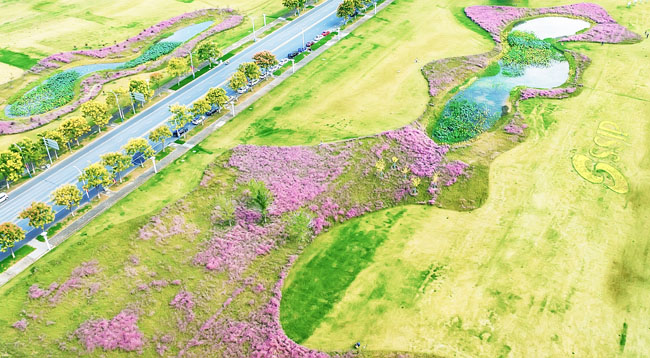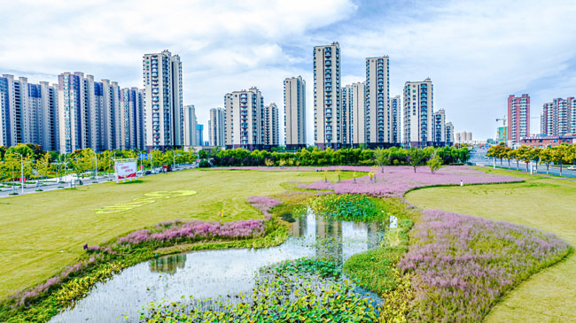 2023年10月1日,蘇宿工業(yè)園區(qū)蘇州公園北側(cè)綠地的粉黛亂子草盛開了,一片片粉色花海如夢(mèng)似幻,吸引游人前來觀賞,樂享國(guó)慶假期。