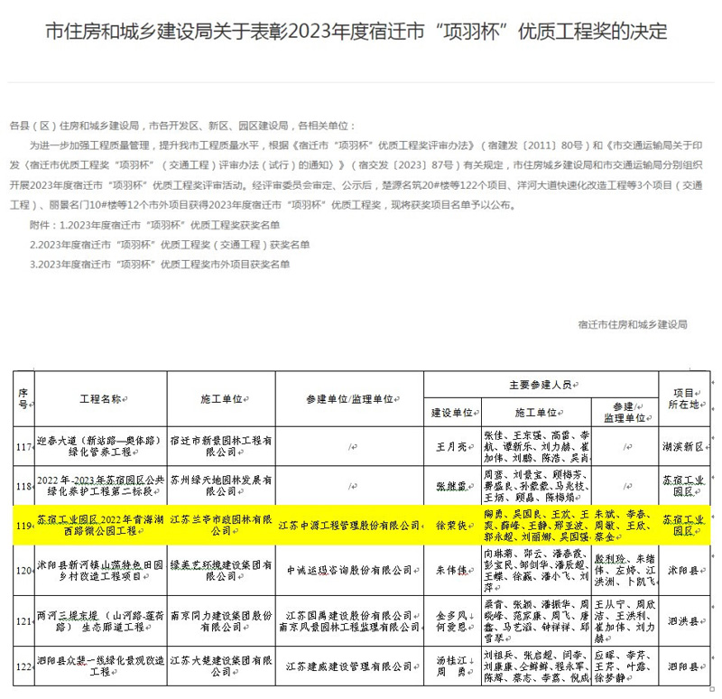 近日,園區(qū)口袋公園項目——蘇宿工業(yè)園區(qū)2022年青海湖西路微公園工程榮獲2023年度宿遷市“項羽杯”優(yōu)質(zhì)工程獎。