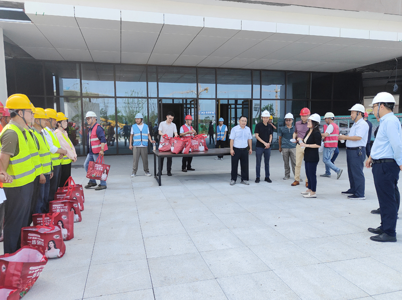 夏日炎炎,廣大勞動者堅守一線,揮灑汗水,保障項目建設(shè)有序進(jìn)行。8月2日上午,城發(fā)公司董事長、總經(jīng)理李蘭霞帶隊赴項目現(xiàn)場看望一線工作人員,為奮戰(zhàn)在高溫一線的勞動者們送去防暑降溫慰問品,把公司關(guān)懷送達(dá)一線工人心坎上。