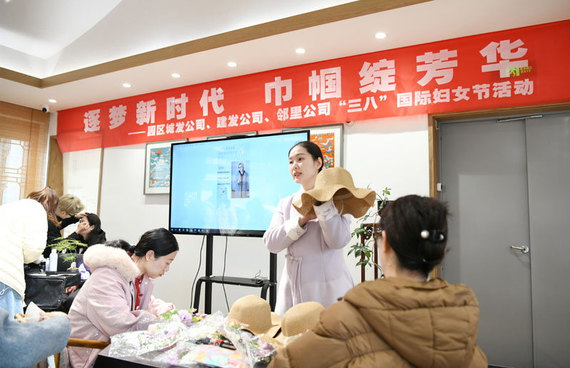 在手工制作環(huán)節(jié),女職工們化身“匠心設(shè)計(jì)師”,運(yùn)用絲帶、花草等材料精心制作專屬禮帽。現(xiàn)場(chǎng)學(xué)會(huì)運(yùn)用各自的創(chuàng)意巧思,呈現(xiàn)出風(fēng)格各異的作品。