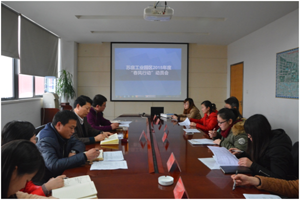為搶抓春節(jié)招聘良機(jī),服務(wù)好園區(qū)企業(yè)用工,2月15日下午,園區(qū)召開2015年度“春風(fēng)行動(dòng)”推進(jìn)會(huì),可成、長電、天御、蘇瓷等7家園區(qū)重點(diǎn)用工企業(yè)參加了會(huì)議。