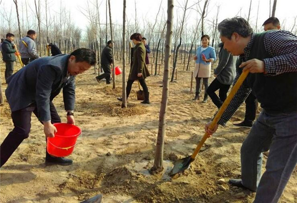 初春3月,綠樹(shù)掩映下的蘇宿園區(qū)春意盎然,生機(jī)勃勃。12日上午,園區(qū)建發(fā)公司在園區(qū)紫金山路與古城路交叉路口北側(cè)苗圃基地開(kāi)展植樹(shù)活動(dòng),悉心種植了100余株黃山欒,為園區(qū)再填新綠。