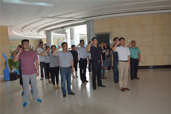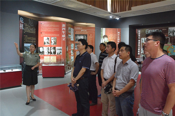 全體黨員干部參觀了紀(jì)念館,展館里大量的歷史文獻(xiàn)、珍貴的革命文物和各個時期的新聞圖片、資料再現(xiàn)了新四軍軍部在黃花塘運(yùn)籌于帷幄之中,決勝于大江南北的豐功偉績。在紀(jì)念館大廳,全體黨員面對鮮紅的黨旗,莊嚴(yán)地舉起右拳齊聲宣誓,重溫了入黨誓詞。