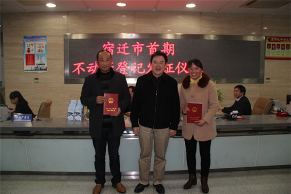 市國(guó)土局局長(zhǎng)趙昌說(shuō):“園區(qū)不動(dòng)產(chǎn)登記走在全市前列,今天宿遷市首期不動(dòng)產(chǎn)權(quán)證書的正式頒發(fā),標(biāo)志著不動(dòng)產(chǎn)統(tǒng)一登記制度在園區(qū)范圍內(nèi)全面啟動(dòng)?!?