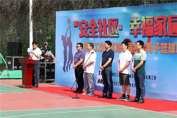 6月18日,“安全社區(qū)·幸福家園杯”園區(qū)第二屆社區(qū)男子籃球聯(lián)賽,在園區(qū)公舍籃球場精彩開幕,園區(qū)黨工委委員、管委會副主任戈亮出席開幕式。