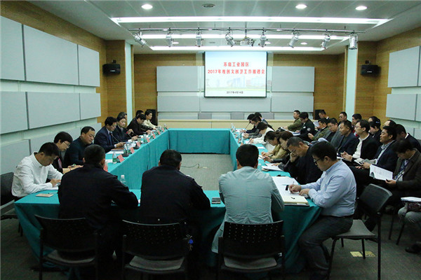 近日,園區(qū)召開2017年度創(chuàng)文創(chuàng)衛(wèi)工作推進會,工委領(lǐng)導(dǎo)戈亮、許紹杰出席會議并講話。園區(qū)五城同創(chuàng)指揮部、創(chuàng)文工作領(lǐng)導(dǎo)小組全體成員,園區(qū)各局辦綜合處負責(zé)同志,園區(qū)各建筑工地負責(zé)人,各住宅小區(qū)物業(yè)公司負責(zé)人參加會議。